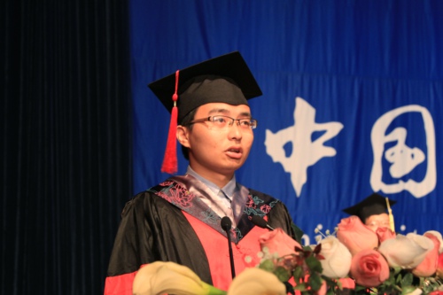 毕业生代表、化学与材料科学学院博士学位获得者徐俊在发言中表达了对父母、老师、母校培育之恩的感谢。他说,在科大求学五年里的每个生活片段,已经在今天定格为最美好的回忆。站在崭新的起点上,带着母校的关爱,带着科大人求真务实、自强不息的精神,带着梦想,我们再次出发,在未来前行的日子中将绽放独具科大魅力的光芒。