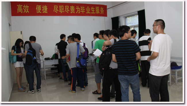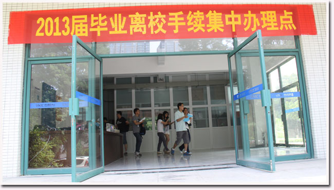 5月28日,学校在学生服务中心设立毕业离校手续集中办理点,由学生工作部(处)牵头,汇集组织部、财务处、图书馆、网络信息中心、学生工作处助学办公室等部门,为毕业生集中办理了接转组织关系、补交学费、归还图书、结算网络费用以及偿还助学贷款等手续。