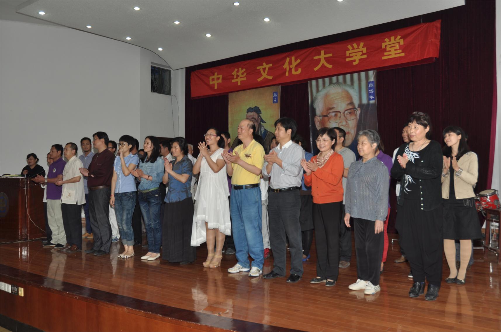 接着,大会举办了中华文化大学第二期学员颁证仪式。在首期学员杨凤华主持下,九十余名新学员有序走上讲台,首先向孔子和张岱年先生的画像行礼,三鞠躬,并向现场的老师和学友鞠躬,在主持人的引领下齐诵中华文化大学的宗旨和追求。第二期新学员是在提出申请的近百名中华文化爱好者中,经大学堂教学委员会审批认证,成为正式学员的。他们中有博士生,退休工人、企业高管、教育一线工作者等社会各行各业的人士,一年多来他们积极参加学修活动,并完成老师了布置的作业,使自己成为合格的正式学员。