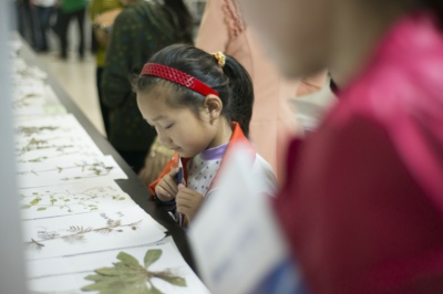 在生命科学学院科普点,志愿者们教小朋友如何制作叶脉书签。小朋友们在家长的帮助下,用刷子将桂树的叶肉刷干洗净后,再用报纸将叶脉擦干,用红绳穿上后,一片精美的叶脉书签就做成了。据志愿者介绍,桂树树叶都是他们早晨7点现采的,为了让树叶根茎不易断裂,他们还将树叶用稀释的氢氧化钠水煮了八分钟。“主要是想让小朋友们体验动手的过程,制作过程中的乐趣远比结果更重要。”