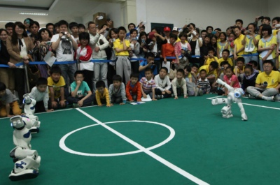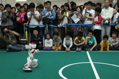 在信息技术科普点,参观者排起了长龙。仿人智能机器人闹闹不仅展示了太极拳表演,还跳起了动感十足的街舞,闹闹可爱的外形、娴熟的动作赢得了现场小朋友和家长的阵阵掌声。表演结束后,小朋友们纷纷与机器人合影留念。