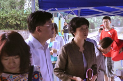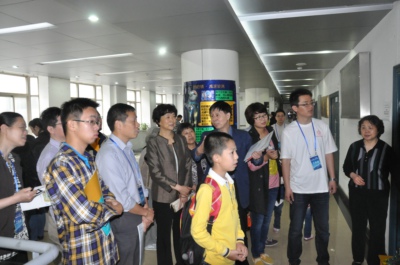 学校十分重视科技活动周。上午9点,校党委书记许武、党委副书记鹿明在东区总服务点,了解活动安排情况。随后,在科技处、党政办等部门负责人的陪同下,鹿明来到东西区各开放点,一一了解活动情况,看望慰问现场服务的师生。当她看到前来参观的中小学生络绎不绝、兴高采烈时,感到十分高兴。她指出,我校每年举办科技活动周,开放许多国家级、省部级实验室,各开放点准备充分、内容丰富,吸引了大批青少年前来感受科学的神奇,这是一件很有意义的事情,也体现了科大一贯的认真作风和服务社会的责任感。今年的活动周又新增了一些开放点,内容和形式上都有所创新,非常好。希望今后再接再厉,办得一年比一年好。