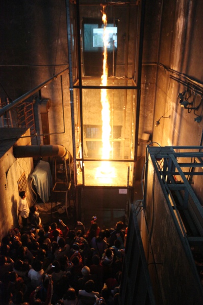 火灾科学国家重点实验室的水炮灭火和火旋风大型试验最吸引眼球。火旋风试验每小时进行一次,操作人员首先点燃试验塔里的火苗,火苗很快呈螺旋状迅速升腾,火越烧越旺,旋转愈加明显,直到燃料耗尽。在水炮灭火演示中,工作人员将地上的火盆点燃,熊熊烈焰顿时腾起,安装在大厅墙壁上的感应器就开始自动探测,当迅速锁定着火点后,水炮就立即喷出一道弧形的水柱,将火盆浇灭。精准的定位、快速的灭火过程,让观众们情不自禁地鼓起掌来。火灾科学国家重点实验室还推出了大型科技展板、火灾警示宣传科教片、互动游戏等,以丰富的形式向公众普及有关火灾安全的知识。