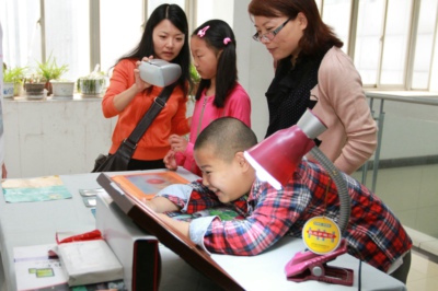 在光电子科学与技术安徽省重点实验室科普点,参观者一进大厅就被展示区域的各种LED灯所吸引;二楼还安排了三维立体显示技术,每个实验台前都被好奇的小朋友们围得水泄不通;主办方还安排了3D电影放映,参观者戴上3D眼镜进行欣赏。