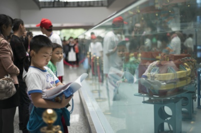 在校史馆,一位来自合肥屯溪路小学四年级的小学生正和妈妈一起参观了解科大的校史。她告诉记者,这是她第二次来科大参观科技活动周了,非常喜欢科大安排的这些科普内容。她妈妈则表达了期望:“希望孩子能够努力学习,以后争取考上科大,成为这些志愿者中的一员。”
