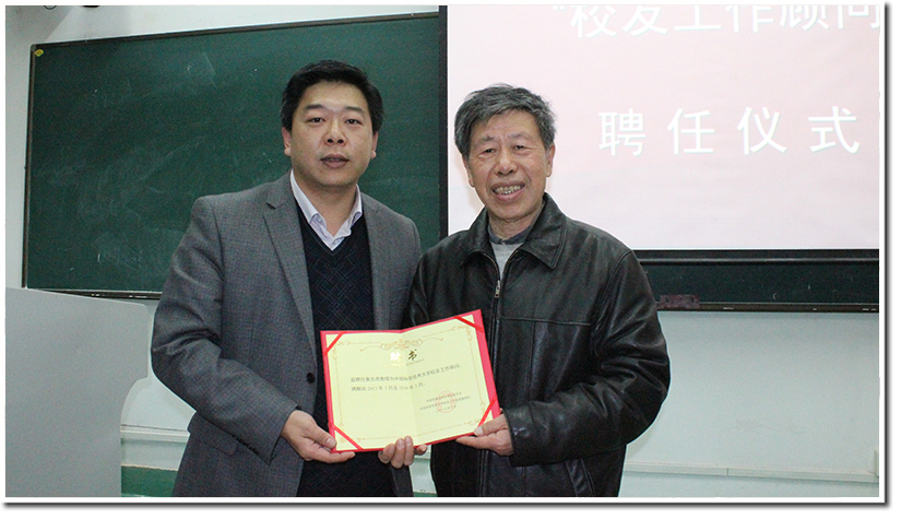 3月29日,黄吉虎教授“校友工作顾问”聘任仪式在东区2305教室举行。校友总会和校友工作志愿服务队全体师生参加了活动。校友总会副会长兼秘书长朱东杰为黄吉虎教授颁发了聘任证书。