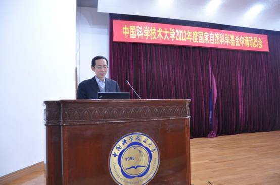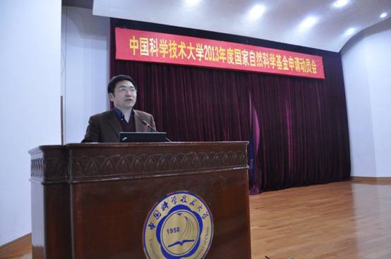 为做好我校2013年度国家自然科学基金项目的申报工作,调动广大科技工作者申报国家基金的积极性,2012年12月27日下午,中国科学技术大学2013年度国家自然科学基金申报动员大会在水上报告厅召开。国家自然科学基金委计划局郑永和副局长、我校朱长飞副校长出席了大会,参会教师共300余人。会议由朱长飞副校长主持。