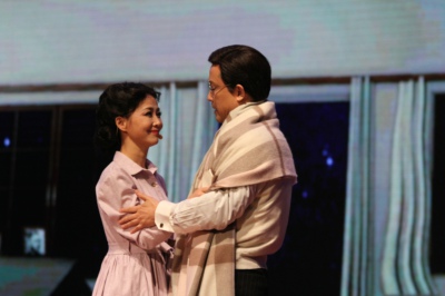 当晚,舞台上LED布景华美逼真,剧情富于感染力和震撼力,音乐旋律时而优美绵长、时而激情澎湃、时而深沉忧伤,演员们情感真挚、唱腔深情——在一个小时五十分钟的时间里,现场观众沉浸在《爱在天际》所营造的大爱氛围里。“回家去”、“新的大学”、“戈壁滩上”、“我们的爱相同”、“牺牲”、“把爱送上天际”……一幕幕感人至深的情景震撼着现场观众,现场多次响起雷鸣般的掌声。伴随着剧情的层层推进和演员的精彩演绎,很多师生眼角湿润,饱含热泪,大家被郭永怀先生为科学、为国家献身的大爱精神,以及郭先生与其家人之间真挚的情感深深地感染。