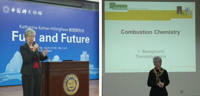 科瑟-赫英郝斯教授在我校工作期间,与国家同步辐射实验室、火灾科学国家重点实验室和化学物理系研究人员进行了深入的学术交流,为我校师生做了题为《Fuel and Future》的精彩报告,并为我校相关专业研究生和来自国内7所高校和研究所的燃烧专业研究生开设了“燃烧化学基础与前沿系列讲座”。