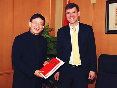 Grossmann博士首先介绍了出版社的历史、出版物和在中国的发展。他指出,德古意特出版社近年来致力寻求与中国学界、出版界加强联系。Grossmann博士对邀请到侯校长出任出版社中国学术委员会委员,从而提升自然科学审稿水平表示非常荣幸。他同时也希望能够与中国科大共创学术期刊,出版学术丛书,在纸质和电子媒介上都加强合作。