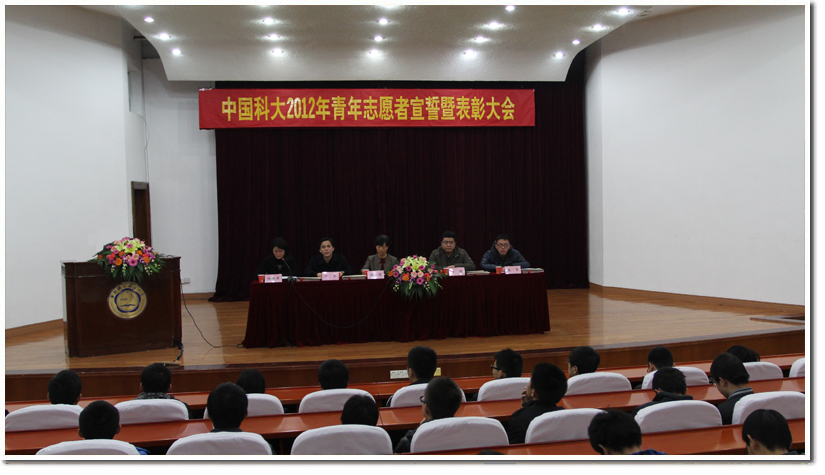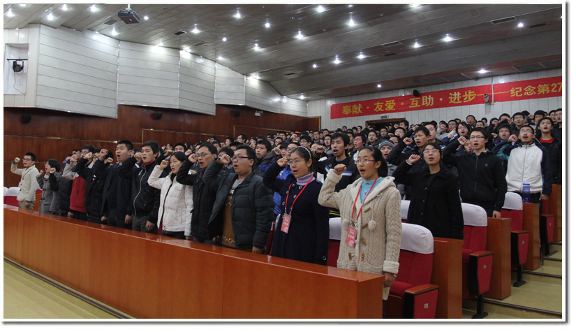 12月5日,第27个国际志愿者日,我校2012年青年志愿者宣誓暨表彰大会在水上报告厅举行。校党委副书记鹿明出席大会并讲话,校学工部、校团委有关负责人出席会议并为优秀志愿者代表颁奖。大会由校团委副书记杨晓果主持。