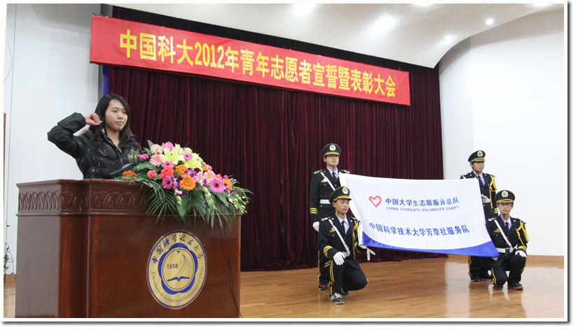 芳草社青年志愿者协会会长、2010级少年班学院翟秋实同学作中国科大2012年志愿服务工作报告,对一年来校团委志愿服务工作办公室、校芳草社青年志愿者协会、校研究生支教团、校学生自强社、校学生精进爱心社、校学生唐仲英爱心社等志愿者组织开展的一系列志愿服务活动进行了汇报。