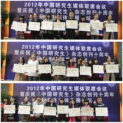 下午六时许,舒缓的钢琴曲响起,伴随着悠扬的歌声与如雷的掌声,2012年中国研究生媒体联席会议暨庆祝《中国研究生》杂志创刊十周年研究生媒体发展论坛圆满落幕。