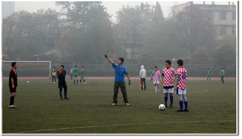 在另一块场地上进行的是“首研杯”的角逐。物理学院在场面上稍占优势,并率先由右边锋突破推射远角得手。然而地空学院队并未就此放弃,他们顽强地扳平比分并将比赛拖入点球大战。点球大战中,两队球员因紧张均发挥失常,多个球打偏。直到第6轮罚球,客串守门员的地空学院队长飞身扑出物院队员射出的半高球,直接结束比赛。最终,地空学院队胜出,获得“首研杯”冠军。