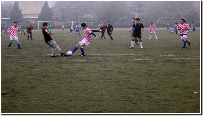 11月25日上午,2012中国科大“雏鹰杯·首研杯”男子足球赛决赛在东区体育场举行。物理学院队与化学院队在东区南场共同上演了精彩的“雏鹰杯”冠军争夺战,而场地的另一边,物理学院和地空学院也在为“首研杯”冠军进行激烈的争夺。研究生院副院长屠兢,校团委副书记张平、周宇等到场与热情的球迷共同观看了比赛。