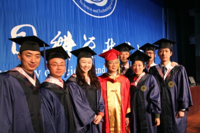 毕业典礼暨学位授予仪式是科大学子在校的最后一课,学校十分重视这个神圣而庄严的时刻,对每个环节精心设计,巧妙安排,专人负责。为便于同学们赶到会场,校车队还增派班车,在西区图书馆和南区图书馆前接送参加仪式的同学。在大礼堂外,还放置了毕业留影背板,专门用于毕业生拍照留念。为了让远方的亲友与毕业生共同见证这一重要时刻,分享成功的喜悦,本次仪式还通过网络进行现场直播。