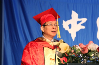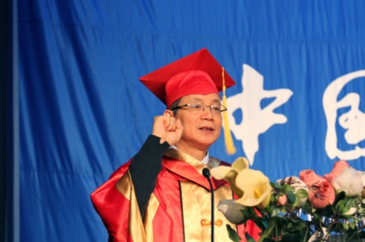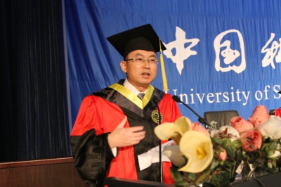 导师代表、物理学院曾长淦教授在致辞中表达了自己的依依不舍之情,对大家的未来充满期待。他首先希望大家发扬科大的优良传统,坚持自我,在各行各业中成就卓越;其次,不要过分较真,对别人多宽容,多看别人的长处,不要有道德洁癖,善于团队合作,培养自己的领导能力;此外,善于表达自己,充分抓住机遇,实现人生价值的最大化。