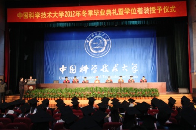 12月1日上午,中国科大2012年冬季毕业典礼暨学位着装授予仪式在东区大礼堂隆重举行。礼堂内外,台上台下,到处都是热情的绽放和喜悦的笑脸,洋溢着节日般的氛围。带着校领导和老师们的真挚祝福,500多名莘莘学子即将踏上人生新的征程。许多学生家长和亲友也远道而来,分享这一激动人心的时刻。