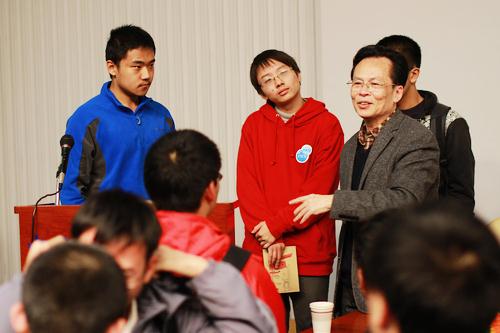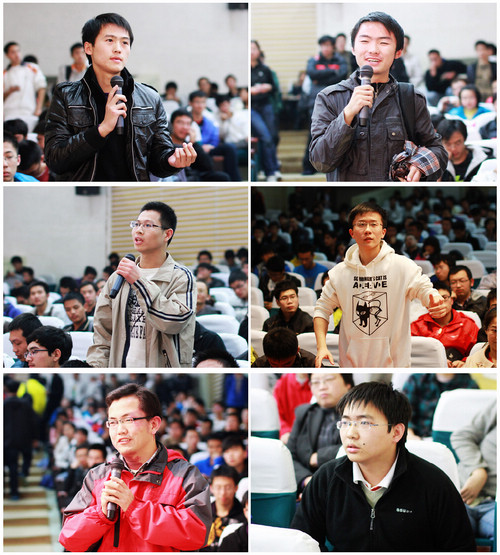 之后,学生就量子纠缠态、如何理解经典世界和量子世界、量子计算机逻辑运算、消相干作用等感兴趣的问题向郭光灿院士提问。郭老师进行了精辟的回答,澄清了混态、纠缠态等概念,指出经典世界是量子世界的特例,引发同学们对量子计算机物理实现的思考。