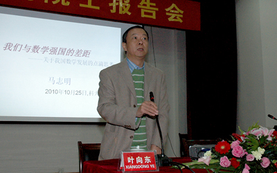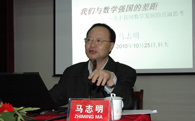 10月25日至26日,中国科学院数学与系统科学研究院研究员、中国科学院院士、第三世界科学院院士、中国数学会理事长马志明院士来校,对数学系各项工作做出指导。在校期间,马志明院士给我校华罗庚班和数学系学生做了精彩报告,与数学系教授及领导班子进行了座谈并对学科建设、人才引进以及筹备成立学院等工作给予了具体指导。