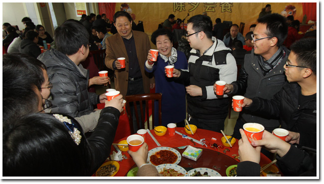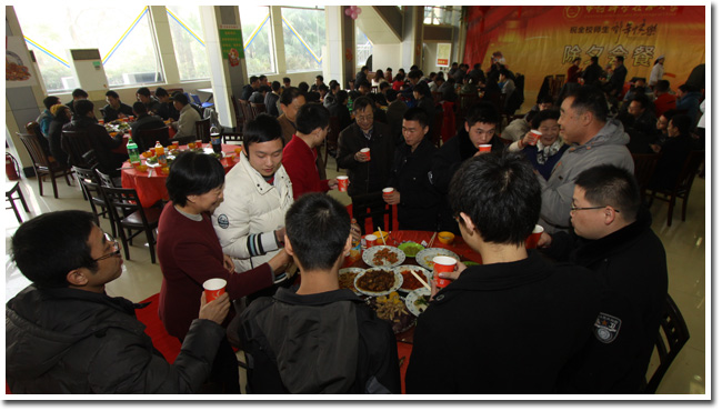 根据校领导指示和有关文件精神,今年的除夕餐会办得既隆重热烈又简朴节约。电子鞭炮新鲜又环保,丰盛可口的饭菜、充满热情的服务和亲切祥和的氛围,深受参加餐会师生的好评。