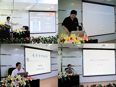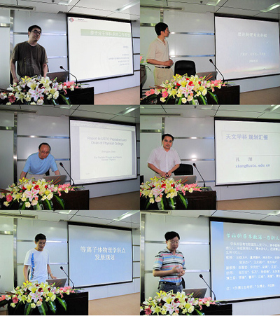 凝聚态物理林子敬教授、光学郭光灿院士、微电子与固体电子学易波教授、理论物理卢建新教授、粒子物理与核物理赵政国教授、原子分子物理陈增兵教授、天体物理孔旭教授、物理电子学金革教授等分别就学科目前的状况、近10年发展目标、人才队伍需求、研究平台建设等方面做了详细介绍。