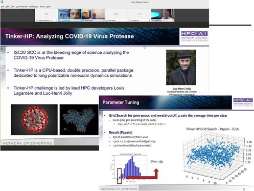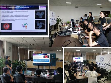 春节期间,新冠肺炎疫情席卷而来,所有参赛队员全部滞留在家中进行线上学习,参赛训练也因此转移到了线上。4月初,面对新冠疫情的压力,ISC竞赛组委会最终决定放弃线下比赛的计划,改为线上举办,并对赛制做了重大调整。最大的变化就是,所有的参赛队都使用同一套系统参赛,取消了传统上的Linpack、HPCC、HPCG等系统性能测试比赛项目,从而也没有设置最高Linpack性能奖。这届比赛的另一个显著的变化是应用挑战项目由以往的4个变成了6个,增加了两个分子动力学模拟软件Tinker-HP和GROMACS,让参赛队员们尝试用这两个软件寻找对抗COVID-19病毒的方法,与全球的生命科学家和研究人员一道,加入到抗击COVID-19病毒的战斗中,从而更加深刻地领会高性能计算和人工智能是如何影响人类世界的。