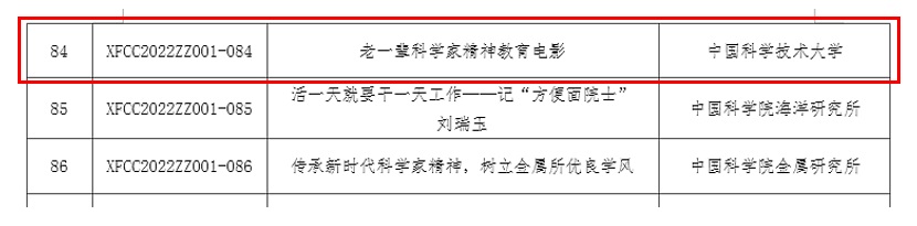 近日,中国科学技术协会公布2022年度学风传承行动项目立项名单,我校申报的“老一辈科学家精神”教育电影(项目编号:XFCC2022ZZ001-084)入选精品资助项目。