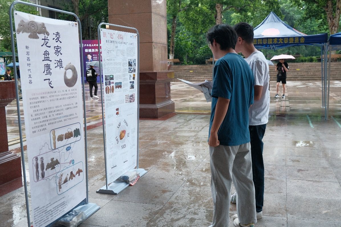 本次馆校合作的展示环节主要由《考古与科学》课程的研究生策划设计,包括“中国家兔起源考证”“新石器晚期祭祀彩石的多种谱学方法研究”“龙盘鹰飞凌家滩”“楚韵皖风——皖北青铜的铸造工艺和金属资源流通网络初探”“凌家滩玉龟玉版之谜——现存最古老的实物宇宙模型?”“春种一粒粟——淮河上中游地区史前稻、旱混作模式的形成、发展与区域差异”等10个主题展板。
