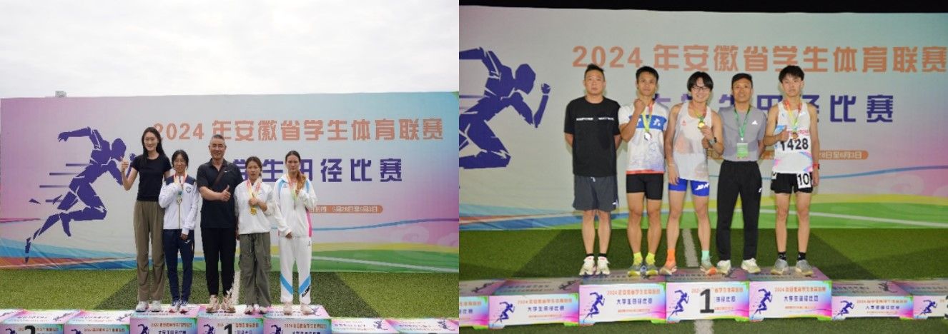 个人项目中,陈婷同学在女子800米比赛中,以2分28秒17的成绩强势夺冠;在3000米项目中同样表现出不俗的实力,以11分08秒34的成绩摘得银牌,并刷新了由自己保持的这两项校纪录。安岩林同学在男子跳远项目中跳出了惊人的7.06米,将金牌收入囊中,该成绩平了安徽省大学生跳远纪录;在三级跳比赛中,安岩林再次神勇发挥,以13.78米收获一枚银牌。章里斌同学在男子5000米的比拼中展现出了顽强拼搏的精神和坚韧不拔的意志,以15分58秒85的骄人战绩搏得一枚宝贵的银牌。骆轩玉同学雨中作战,在竞争激烈的女子100米项目中以13秒56的成绩获得铜牌;在200米项目中也以28秒67的成绩闯入决赛。王子昂同学在男子800米项目中表现优异,以2分05秒13的成绩获得第五名。