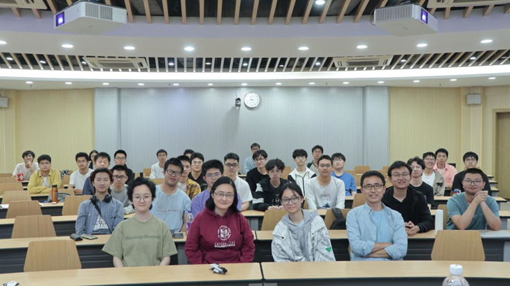 与此同时,蔡晓辉所带的硕士研究生和博士生也在活动中分享了他们在精密普适实验室的研究成果和科研心得,梁贞、谢方婷在活动现场分享了她们科研中的心路历程,为同学们展示了科研之路的魅力与挑战;伍子煜学长在线上分享了他的学习经历和科研感悟,带给了同学们许多启发。