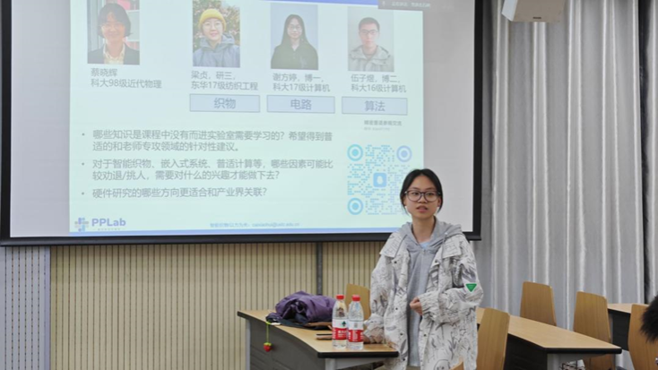 蔡晓辉主要研究方向涵盖智能织物、嵌入式系统、普适/可穿戴计算、新型传感器以及数据挖掘等领域,并将这些技术应用于智慧医疗领域。在本次活动中,蔡晓辉结合自身丰富的科研经验,以生动的案例和深入浅出的讲解,向同学们介绍了智能织物及其在智慧医疗中的前沿应用,为同学们打开了科研领域的新视野同时还提出很多学习上的建议,为同学们今后的学习和发展道路指明了方向。