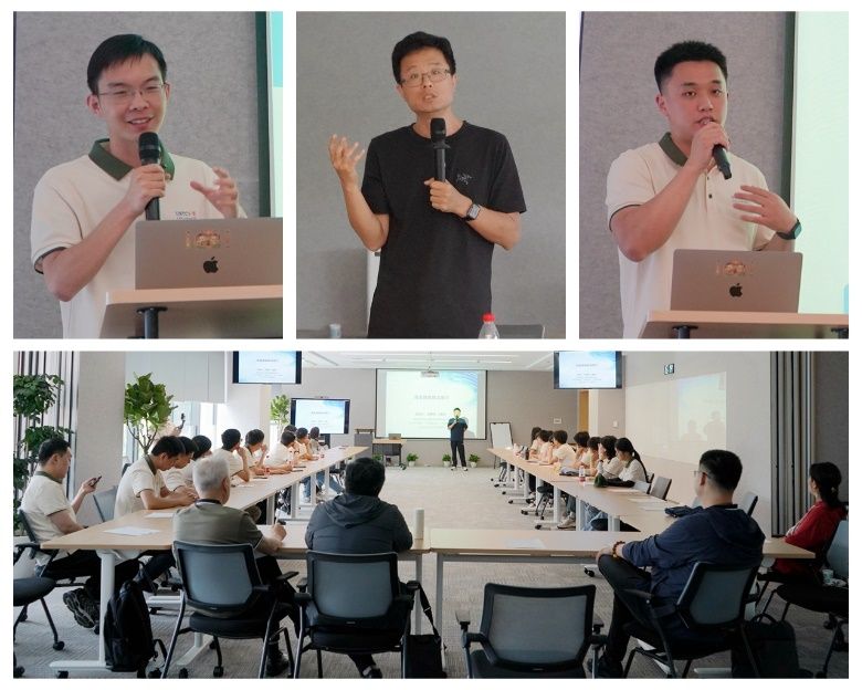 在阿里巴巴集团座谈会上,我校0411本硕博校友、淘天集团资深算法专家刘青文与同学们分享了自己从科大到阿里的学习、工作经历,介绍了淘宝搜推算法模型设计与应用案例。我校首期“雄鹰计划”优秀项目代表“基于离子阱的分布式量子计算系统”负责人、物理学院2021级博士研究生张洋,2023年中国国际大学生创新大赛国赛金奖项目代表“聚乳酸高性能可持续复合薄膜”负责人、先进技术研究院2022级博士研究生李德涵同学分别从项目背景、产品定位、技术优势、商业前景和心得体会等方面进行汇报展示。我校9414校友、不同资本合伙人王明强赞叹于同学们对产品定位、技术优势和产业布局的清晰认知,并鼓励同学们在开展创新创业项目的过程中持续关注用户需求,充分理解商业运营逻辑,打开面向世界的眼光,勇立潮头、迎难直上。