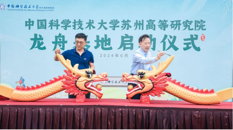 为传承科大龙舟精神,丰富师生文化生活,在端午佳节即将来临之际,6月5日下午,苏州高研院举行龙舟训练基地启动仪式。中国科大校长特别助理、苏州高研院党委书记、执行院长褚家如,校体育教学中心主任王永,苏州市体育总会副主席、苏州皮划艇桨板协会会长韩冰、副秘书长冯玉忠等出席活动。仪式由校研究生院副院长、苏州高研院副院长倪瑞主持。