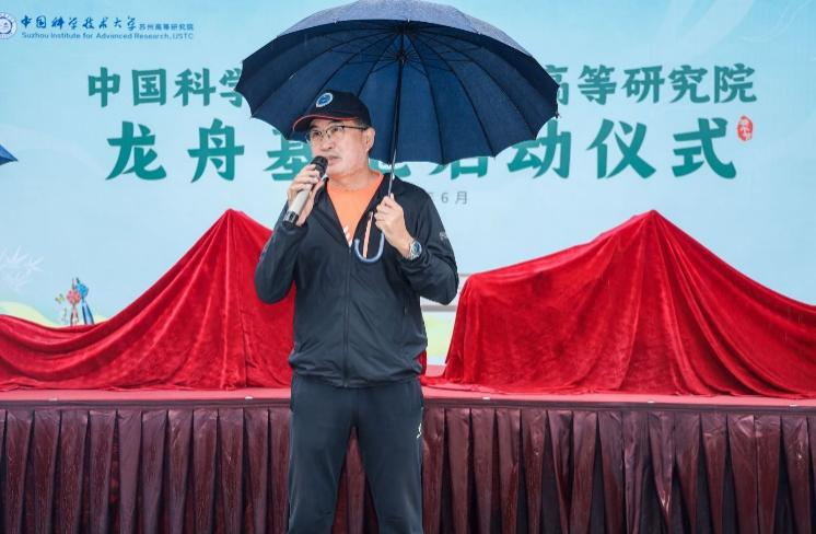 启动仪式在蒙蒙细雨中揭开帷幕。褚家如在致辞中指出,龙舟运动是中国科大特色体育项目之一,承载着科大学子团结协作、奋力拼搏的优秀品质,希望苏州高研院龙舟健儿们继承并发扬科大龙舟精神,展现科大人坚韧不拔、勇往直前的意志品质。