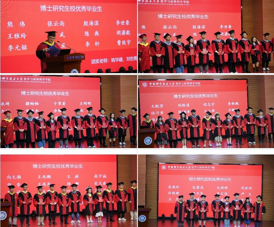 化学与材料科学学院副院长邓兆祥教授宣读校优秀毕业生表彰决定后,各位导师为获得优秀毕业生的学子颁发证书并合影留念。
