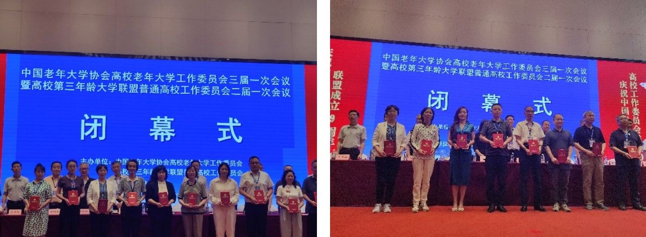 6月13-16日,中国老年大学协会高校工作委员会三届一次会议暨高校第三年龄大学联盟高工委二届一次会议在江西南昌召开。我校老年大学常务副校长刘艳同志荣获老年教育突出贡献奖,我校老年大学《英语口语》课程荣获中国老年大学协会高校工作委员会精品课程二等奖。