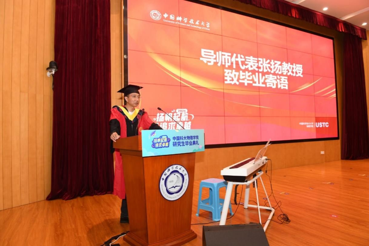 物理学院执行院长陈宇翱在致辞中表示,同学们在科大度过了一段人生中宝贵而难忘的时光,在学术的追求中磨练意志,在师友的陪伴中收获成长,用勤奋和汗水浇灌着梦想,用智慧和勇气攀登着科研高峰。