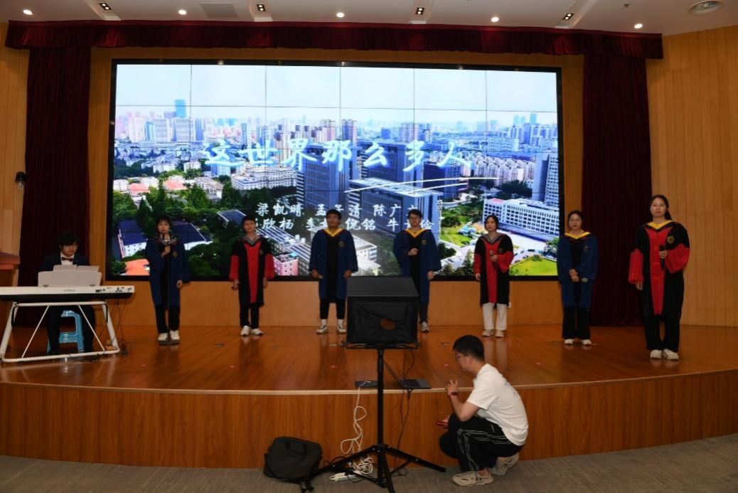 毕业生代表表演小合唱歌曲《这世界那么多人》,送给即将启程的同学,他们将离别的不舍和留恋化作祝福,道阻且长,行则将至,行而不辍,未来可期。