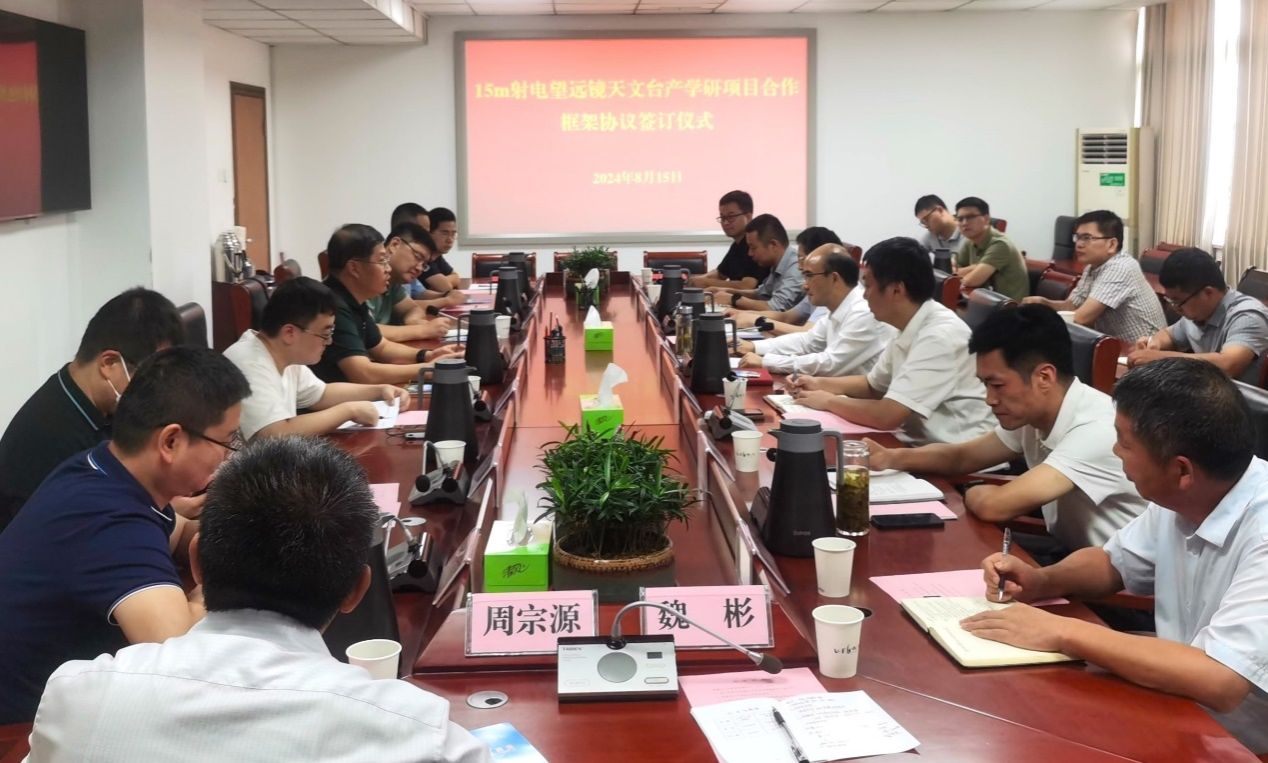 8月15日上午,中国科大与中国电科网络通信研究院、金寨县人民政府签署15米射电望远镜天文台产学研项目合作框架协议。校党委副书记邓建松,中国电科网络通信研究院院长助理李奇,金寨县委副书记、县长张涧出席签约仪式并讲话。中国科大天文学系有关教授,帮扶办公室、有关帮扶干部等参加签约活动。