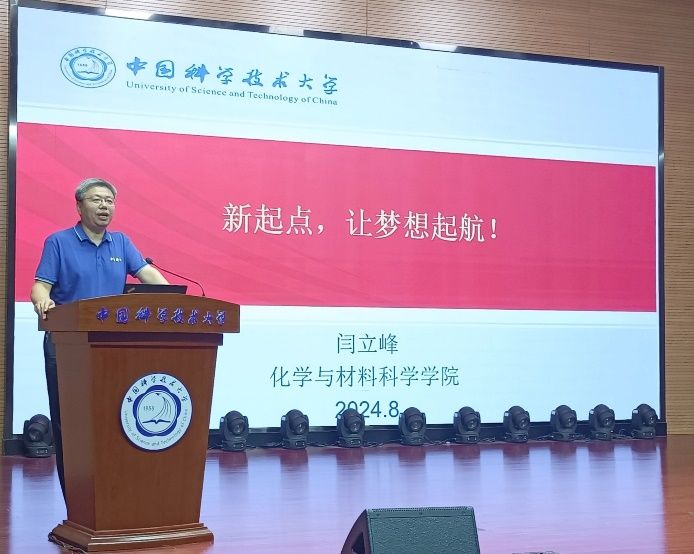 闫立峰以《新起点,让梦想启航!》为题,重点介绍了大学四年的发展目标和化学专业的重要性。他从我校建校历史出发,介绍了杨承宗、郭永怀先生等化学学科的领军人物,诠释了胸怀祖国、服务人民、勇攀高峰、敢为人先、追求真理、严谨治学、淡泊名利、潜心研究的科学家精神,强调了通往成功的要素除了努力,还要不忘初心、对自己提出更高的要求、拥有乐观的心态等。他希望同学们在科大的学习生活中,能树立远大理想,养成良好的学习和生活习惯。他还通过列举与化学和材料相关的核心技术,让大家理解化学与材料科学专业的重要性,期望新入学的同学秉持科大的科研传统、面向国际学术前沿、面向国家重大战略需求、面向国民经济主战场开展科学研究,筑牢知识基础,为国家发展贡献自己的力量。