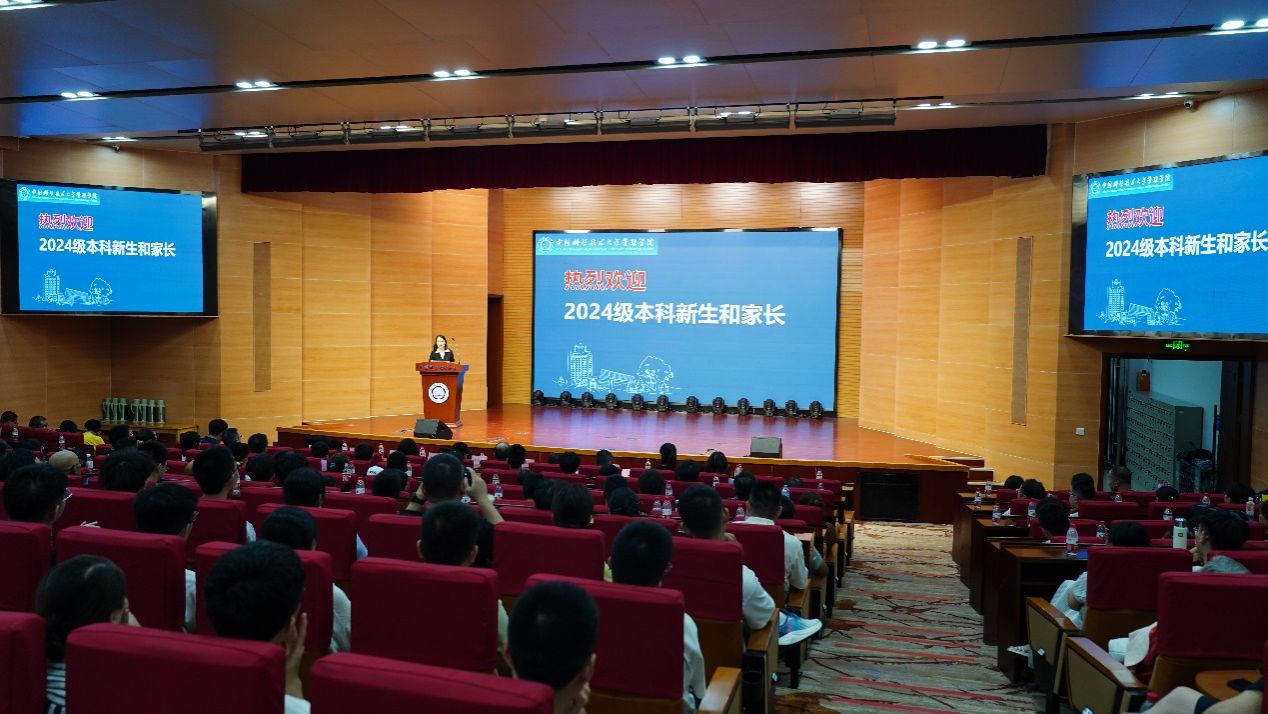 曾皓作学工管理情况报告。她围绕“保持良好心态、积极面对新环境;夯实基础课程、明确努力方向;重视通识教育、提升综合素质;主动融入集体、提高协作能力;严肃规则意识、增强安全防护”五个方面向新生和家长们作经验与建议分享。她向新生们介绍了学院围绕学术科技、生涯导航、实践竞赛、求职创业和文化体育等举办的品牌活动,并就新生心理健康、安全教育、生涯规划等方面给予了针对性的建议,希望同学们能够充分利用好学校和学院提供的丰富资源,积极参与各类活动,获得全方位的提升,为未来发展打下坚实的基础。