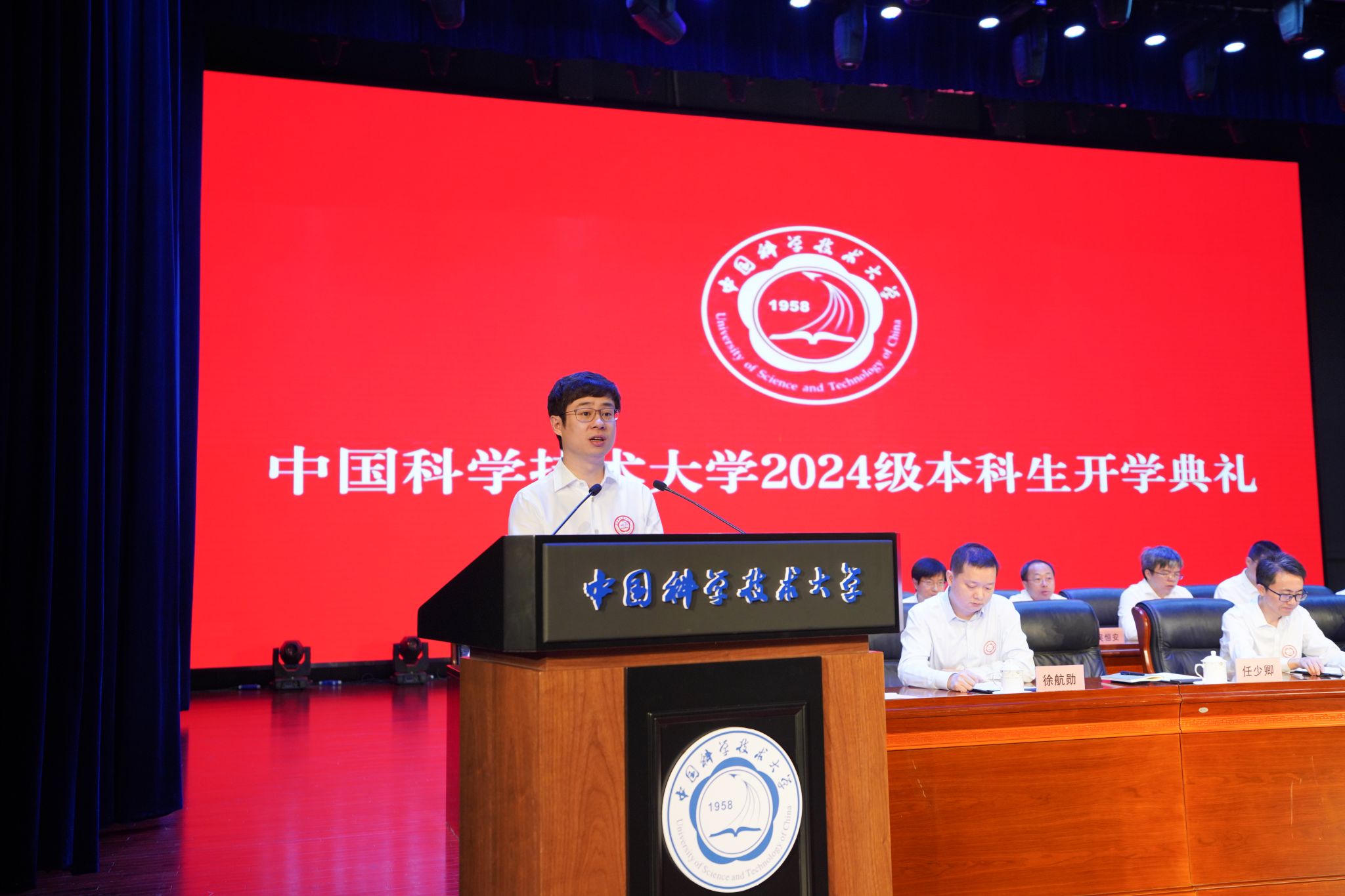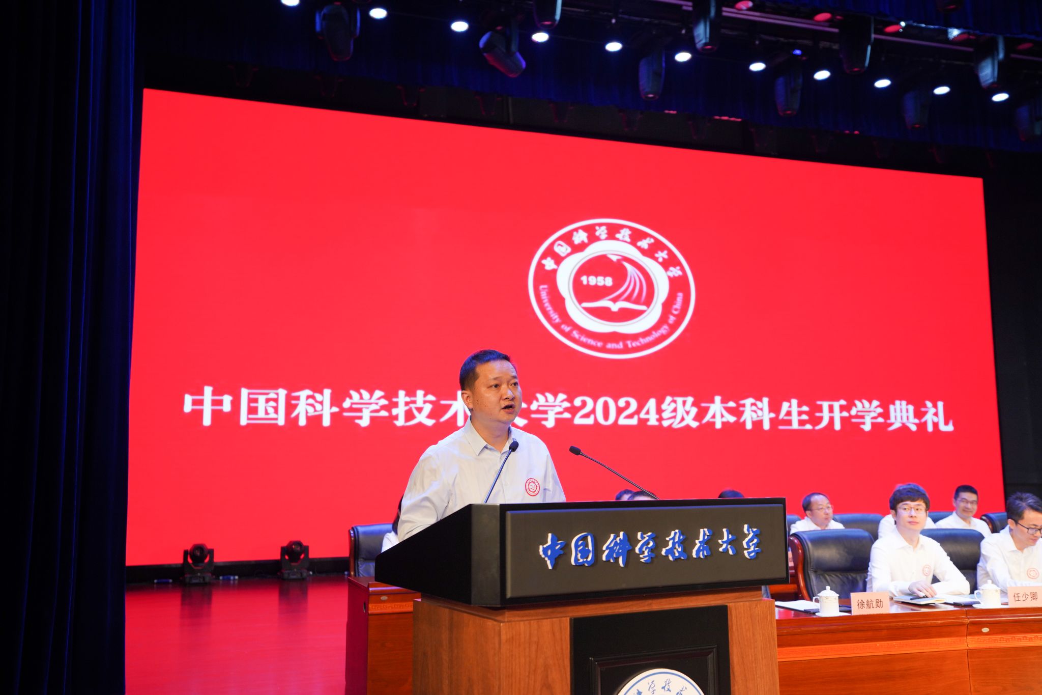 金秋九月,秋高气爽。9月1日,中国科学技术大学2024级本科新生开学典礼在学校东区大礼堂举行。校领导舒歌群、包信和、刘浏、邓建松、汪毓明,校友代表、蔚来汽车副总裁、算法开发及应用首席专家任少卿,相关学院负责人,教师代表出席开学典礼并在主席台就座。机关有关部门负责人、2024级全体本科生新生及班主任参加开学典礼。党委常委、副校长周丛照主持开学典礼。