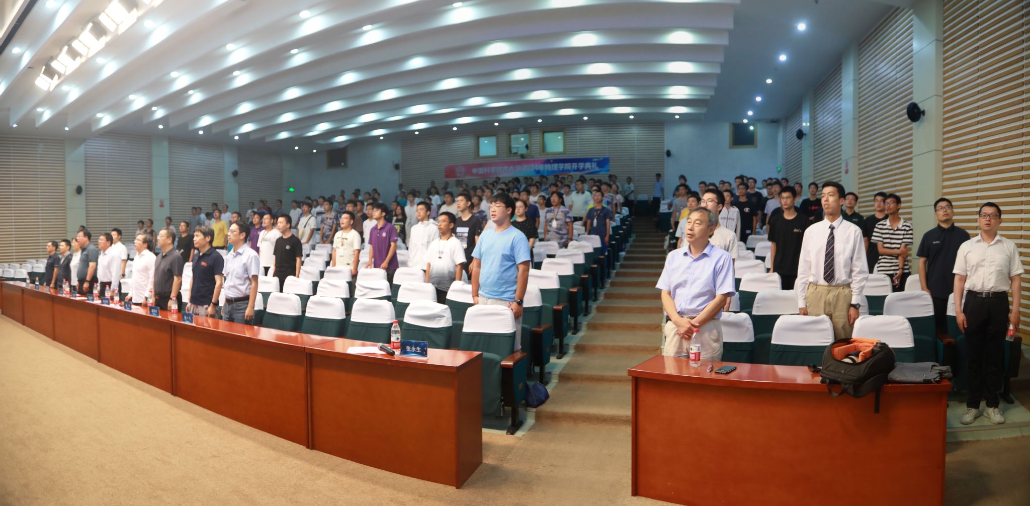 何宇飞同学作为新生代表发言。他表示,来到科大是一种荣幸,与五湖四海的同学们相聚于此更是一种缘分。“物为承载继往昔,理为明星开未来。”他将与大家一起,勤奋学习、刻苦努力,传承与弘扬老一辈科学家精神,珍惜宝贵的大学时光,在中国科大物理学院茁壮成长。