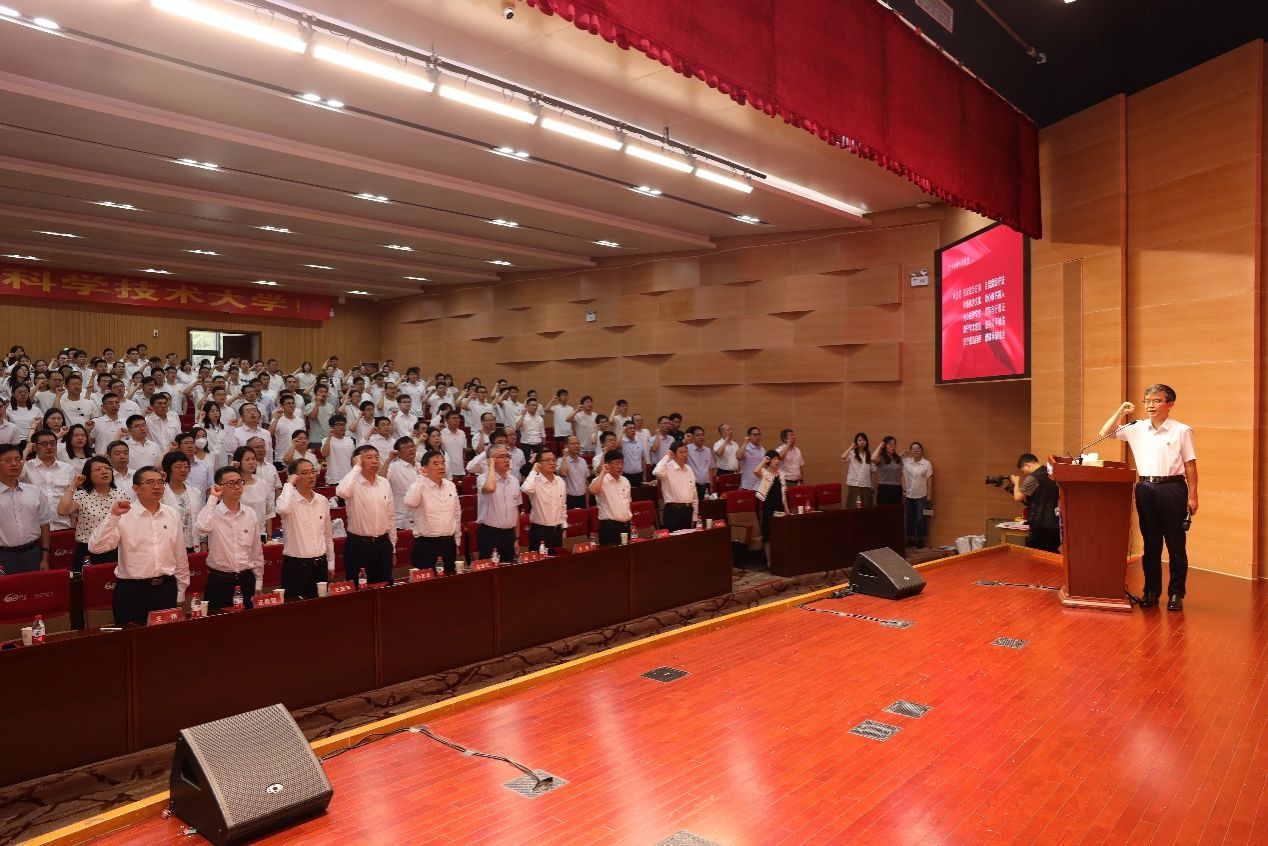 为深入学习贯彻习近平总书记在全国教育大会上的重要讲话精神,传递学校对新进教师的重视与关怀,激励新进教师赓续中国科大精神,传承优良校风,涵养高尚师德,增强知校、爱校、荣校意识,学校于9月19日上午8:30在水上报告厅举行2024年校风传承月——新进教师入职欢迎仪式。校党委书记舒歌群、校长包信和出席仪式并作报告,校领导王晓平、薛天、汪毓明、李峰、王伟出席仪式并为新进教师代表颁礼,校党委副书记邓建松主持仪式。学院负责人、机关有关部门负责人和200余名新进教师参加仪式。