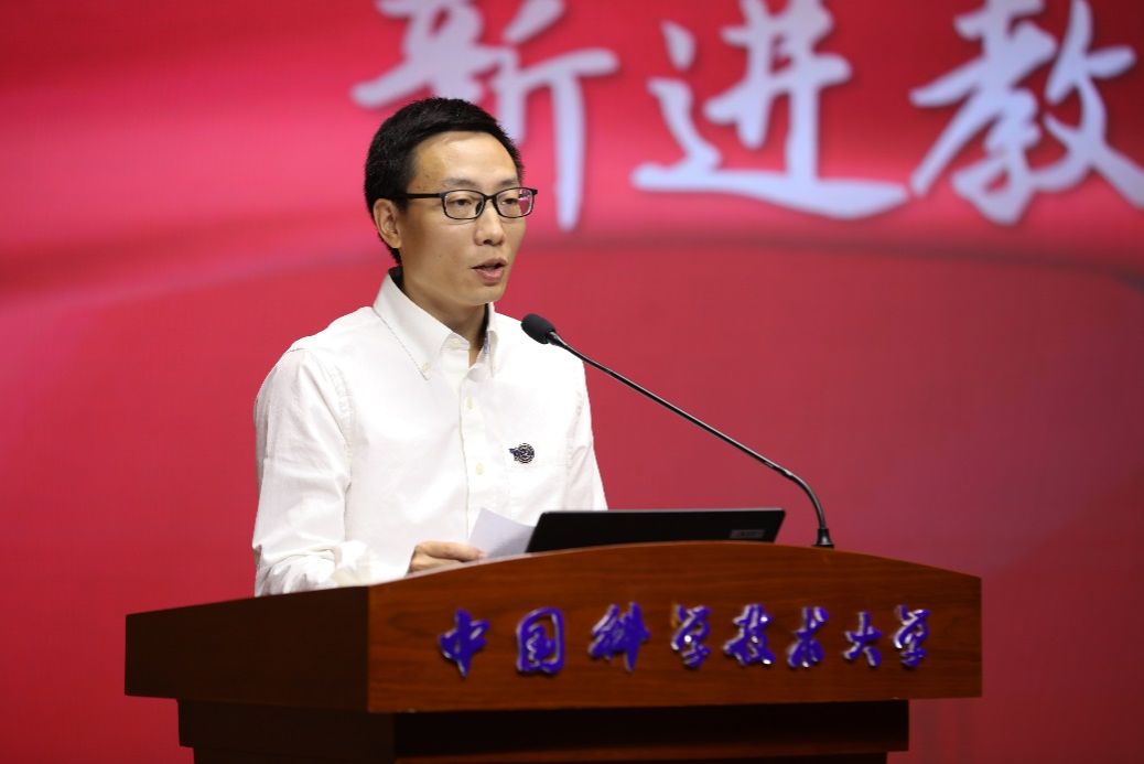 地球空间和科学学院特任教授邹宇飞作为新进教师代表发言。他讲述了自己在海外学习成长到毅然归国奋斗的经历,表达了作为一名“新科大人”的家国情怀,今后将学习老一辈教育家和科学家的精神,在教学科研岗位上发光发热。