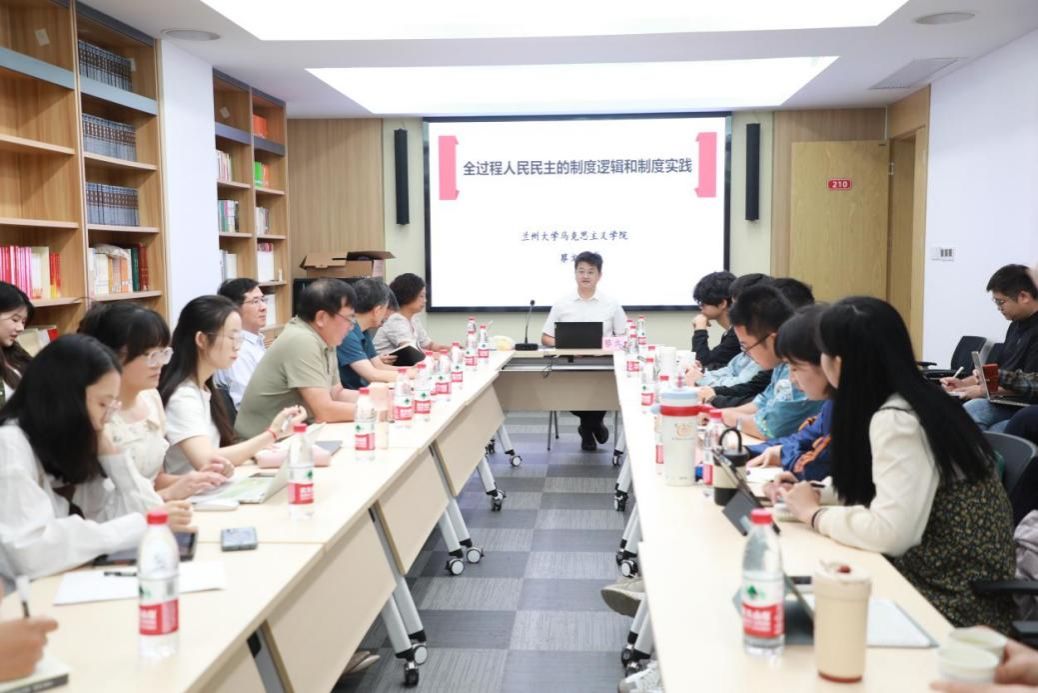 9月21日下午,中国科大“理实交融”马克思主义理论学科系列讲座在东校区马克思主义学院210会议室举行,兰州大学马克思主义学院院长蔡文成教授应邀作《全过程人民民主的制度逻辑与制度实践》专题报告。马克思主义学院执行院长刘立、党总支书记杨保国、副院长汤俪瑾及学院师生参加报告会。报告会由刘立主持。
