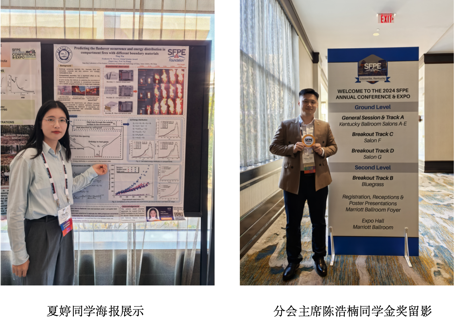 2024年10月6日-8日,国际消防工程师学会年会(SFPE 2024 Annual Conference & Expo)在美国路易维尔市举行。我校火灾科学国家重点实验室(以下简称“火灾实验室”)博士生夏婷荣获Frederick W. Mowrer Global Scholar奖。