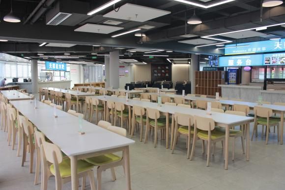 餐厅在设计改造中注重“多功能”性发挥,在保障就餐功能的同时,通过装修和桌椅对环境进行主题分区,划分了自习区、休息区,休闲区等场所,不仅满足了师生的学习、就餐保障,更兼顾了师生休闲娱乐、社交活动的多元化需求,新增的附有“科大蓝”的休闲座椅既展示了科大特色,也增添了艺术气息,清新的卡座沙发,靠窗的学习桌,让师生在享受美食的同时,也能远眺校园美景体验到一份宁静与放松。