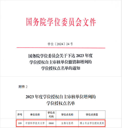 近日,国务院学位委员会正式下达了2023年学位授权自主审核单位增列学位授权点名单,我校生物与医药专业博士学位授权点(学科专业代码:0860)获批。这是继电子信息专业博士等学位点后,我校获批的第七个专业博士学位点。